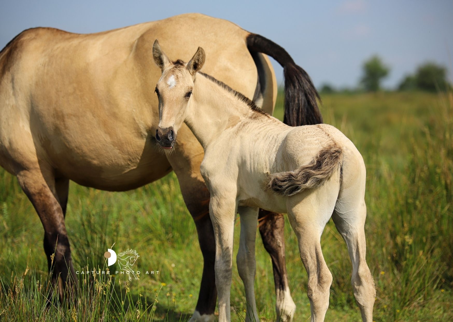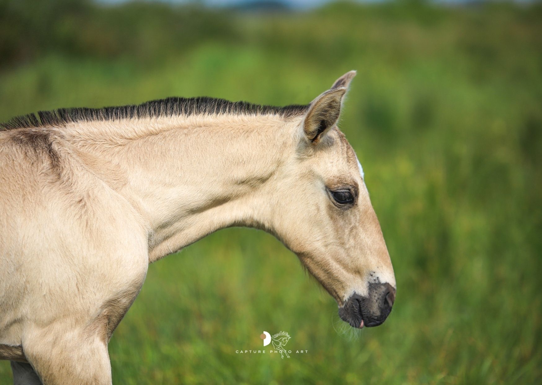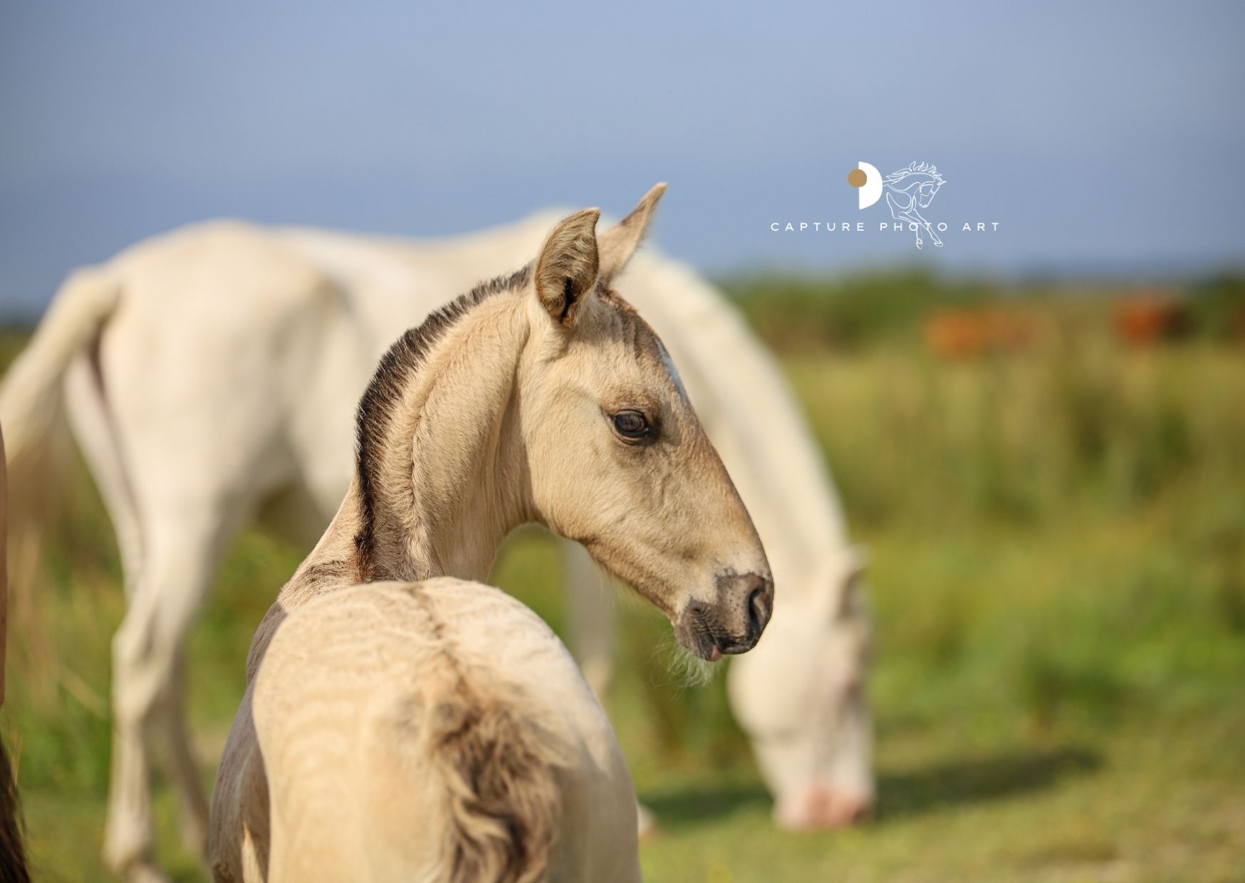 Dunskin foal, ideal for a dressage project given his genetics, locomotion, and conformation. He is available for reservation now and will be able to leave the stud after weaning.