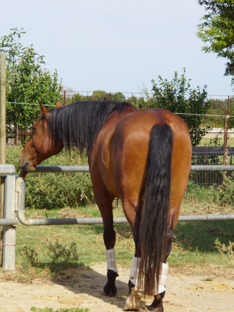Caractéristiques : hongre de 5 ans, au modèle harmonieux, avec des allures amples et aériennes idéales pour du dressage classique. Débourré aux printemps, Real poursuit sa formation de base, c’est un cheval généreux et volontaire, doux et énergique. Il est bien mis aux trois allures, commence les cessions à la jambe, va seul ou accompagné en extérieur, commence à se familiariser avec le parcours d’équitation de travail. Son équilibre naturel et son mental pourrait également en faire un excellent cheval pour la discipline.